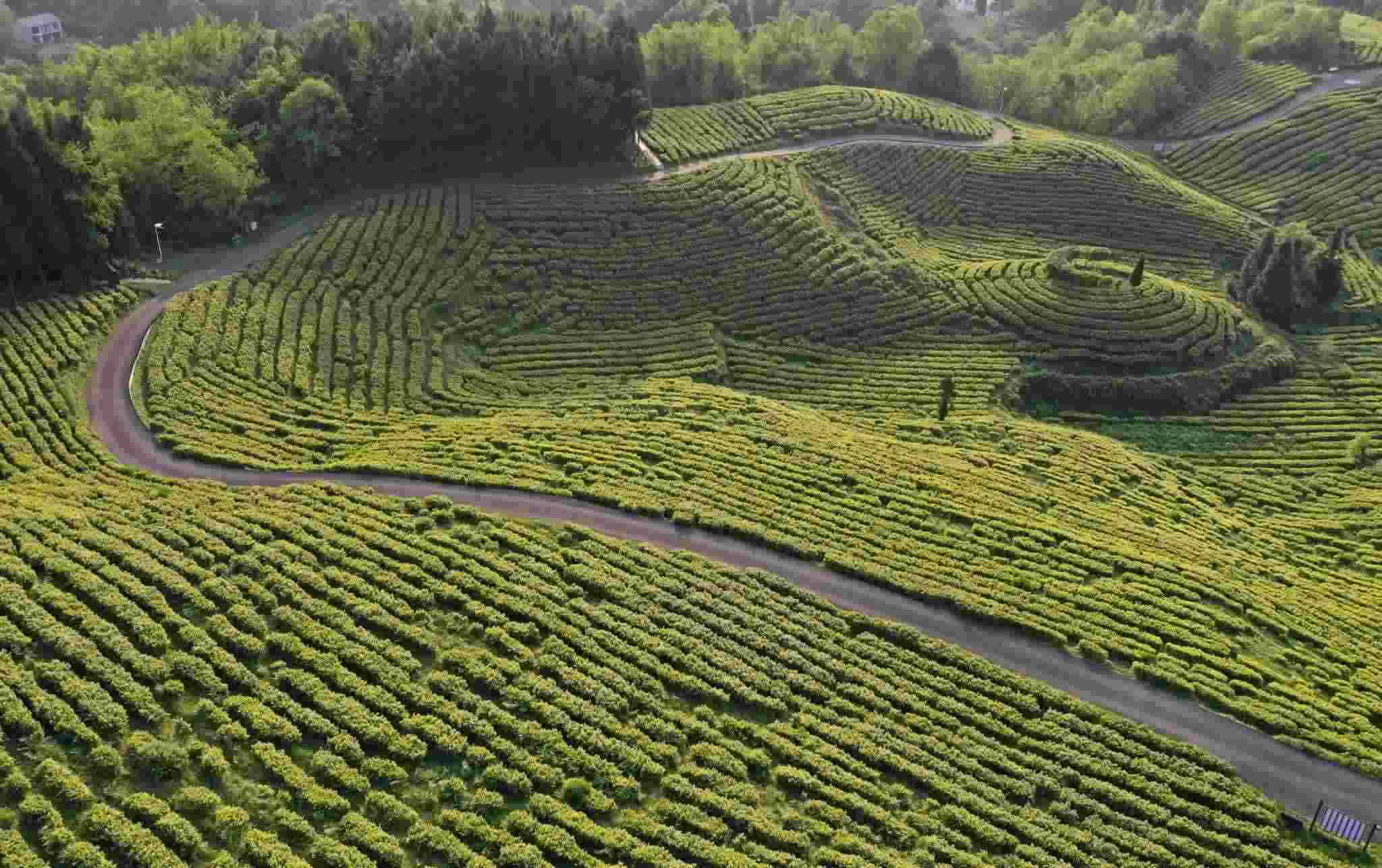 貴陽:茶山翠綠延綿起伏 2023年4月14日,貴陽,觀山湖區(qū)朱昌鎮(zhèn)高寨村神鵲茶場,......