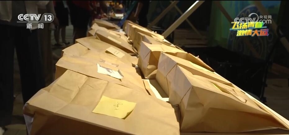 在大運(yùn)村的文化市集“禮物漂流記”活動(dòng)現(xiàn)場(chǎng),工作人員正指引參與活動(dòng)的運(yùn)動(dòng)員們完成互換禮物的游戲。參與者經(jīng)過(guò)登記,留下自己的禮物并寫(xiě)下祝福語(yǔ),就可以在盲盒區(qū)挑選一份禮物帶走。不同國(guó)家的徽章、帽子、衣服,運(yùn)動(dòng)員們自制的手鏈、戒指,甚至從家鄉(xiāng)帶來(lái)的石頭,來(lái)自世界各地的特色禮物在大運(yùn)村傳遞著文化、友誼和美好的祝福。