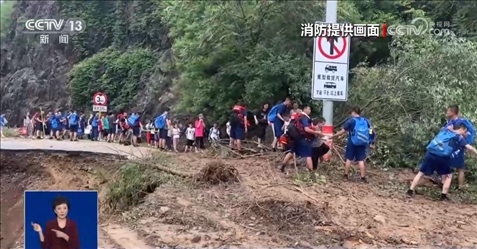 8月2日上午,現(xiàn)場總指揮決定護(hù)送自愿離開的被困群眾進(jìn)行撤離。在撤離的隊(duì)伍中,有38名來自新疆參加北京游學(xué)的孩子,他們最小的6歲,平均年齡也只有8歲。為了保障轉(zhuǎn)移時(shí)的安全,撤離線路選擇了相對安全的盤山公路進(jìn)行。途中經(jīng)過落石塌方險(xiǎn)區(qū)的時(shí)候,消防員們依次排開,在斷崖旁形成人墻,用身體筑起一條防線。遇到水流,消防員們把孩子們抱著傳遞到安全位置再繼續(xù)前行。