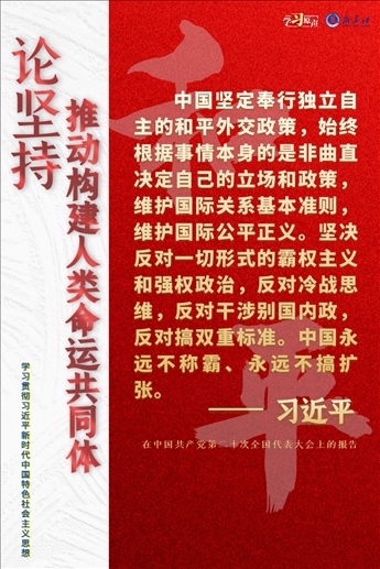 當前,世界之變、時代之變、歷史之變正以前所未有的方式展開。人類社會面臨前所未有的挑戰(zhàn)。世界又一次站在歷史的十字路口,何去何從取決于各國人民的抉擇。中國始終堅持維護世界和平、促進共同發(fā)展的外交政策宗旨,致力于推動構(gòu)建人類命運共同體。