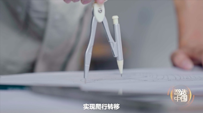 研發(fā)團(tuán)隊(duì)一籌莫展的時(shí)候,一位工程師用圓規(guī)畫(huà)圖,猛然受到啟發(fā)。就像圓規(guī)一樣,他們也讓大型機(jī)械臂的兩只手當(dāng)“腳”,互為支點(diǎn),交替切換向前移動(dòng),實(shí)現(xiàn)爬行轉(zhuǎn)移。