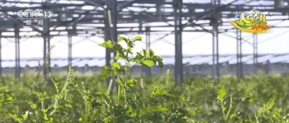 隨著防沙治沙技術(shù)的不斷迭代進步,億利資源集團引進了光伏治沙的理念。現(xiàn)在,已經(jīng)升級到最新的第三代技術(shù)。離地8米的光伏板下面,種了馬鈴薯、西紅柿等作物,其中,馬鈴薯畝產(chǎn)能達到4000公斤,而且大型機械可以在里面作業(yè)。在利用光伏治沙的過程中,田旺和他的團隊還開創(chuàng)了畜禽草耦合治沙技術(shù),利用光伏板下的空間發(fā)展生態(tài)養(yǎng)殖。