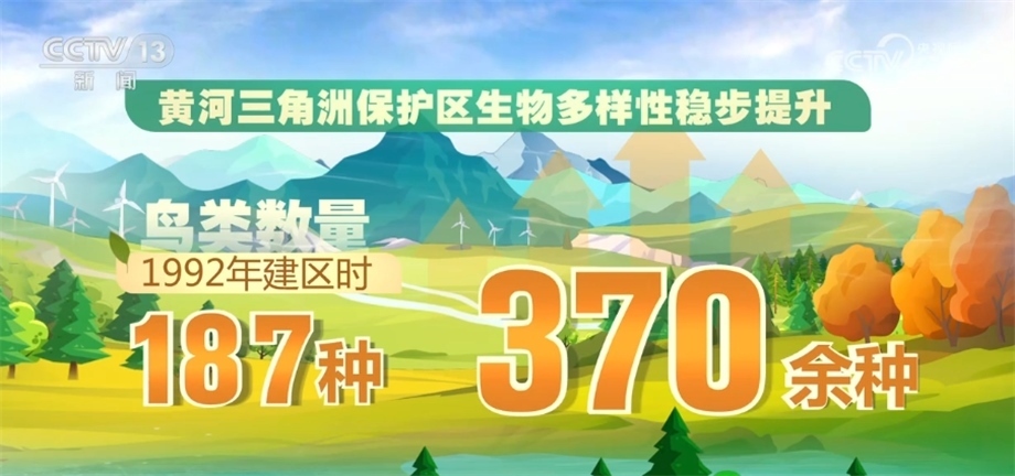 黃河干流在2022年首次全線達到Ⅱ類水質,隨著黃河流域生態(tài)保護和高質量發(fā)展的不斷推進,黃河流域植被覆蓋度提升,“綠線”向西移動約300公里。目前,黃河三角洲保護區(qū)生物多樣性穩(wěn)步提升,鳥類數(shù)量由1992年建區(qū)時的187種增加到了現(xiàn)在的370余種。