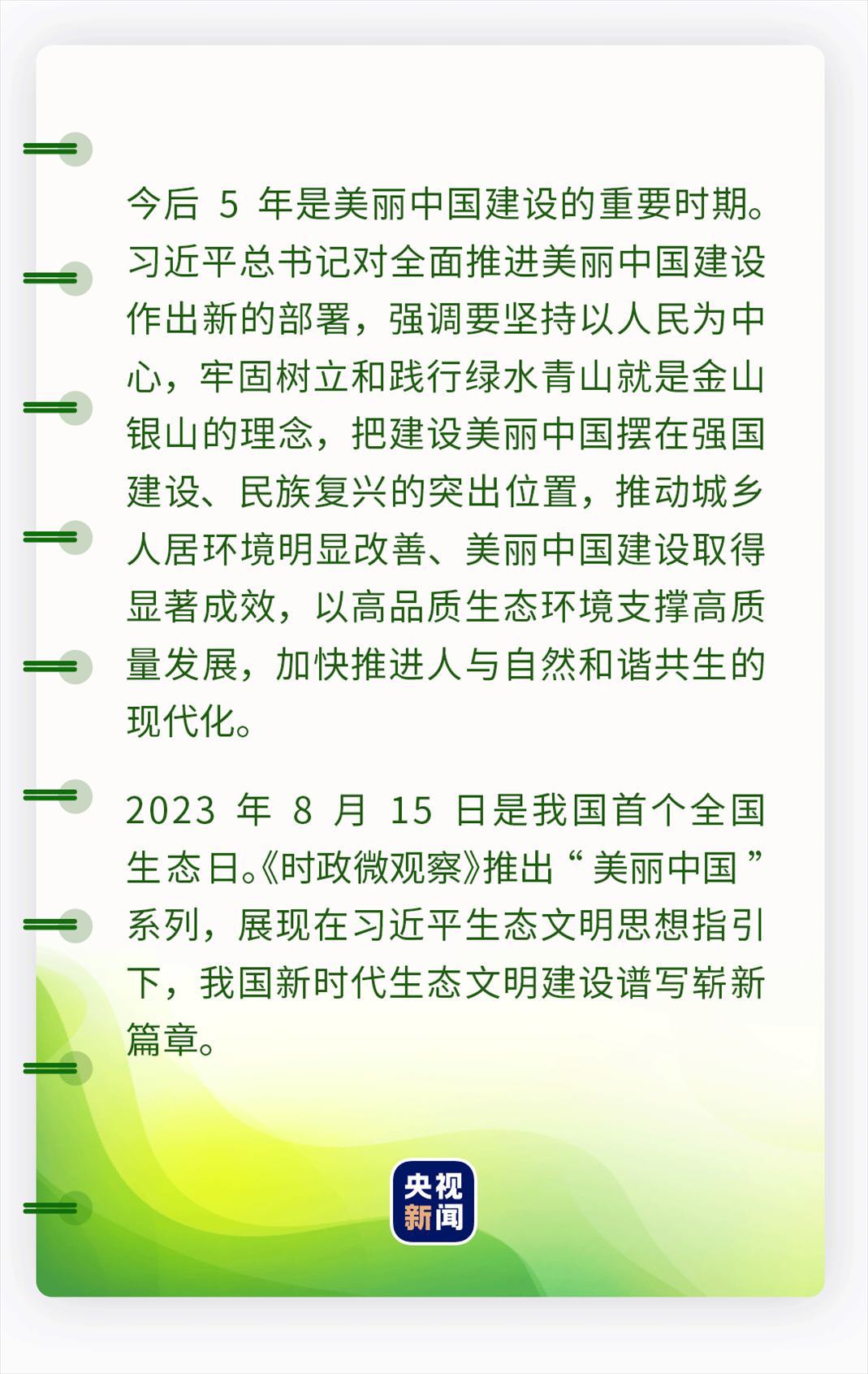 在首個全國生態(tài)日到來之際,習(xí)近平總書記作出重要指示強調(diào),在全面建設(shè)社會主義現(xiàn)代化國家新征程上,要保持加強生態(tài)文明建設(shè)的戰(zhàn)略定力,注重同步推進高質(zhì)量發(fā)展和高水平保護,以“雙碳”工作為引領(lǐng),推動能耗雙控逐步轉(zhuǎn)向碳排放雙控,持續(xù)推進生產(chǎn)方式和生活方式綠色低碳轉(zhuǎn)型,加快推進人與自然和諧共生的現(xiàn)代化,全面推進美麗中國建設(shè)。