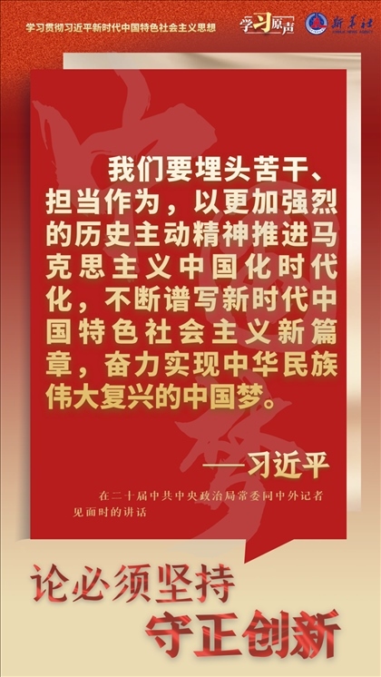我們從事的是前無(wú)古人的偉大事業(yè),守正才能不迷失方向、不犯顛覆性錯(cuò)誤,創(chuàng)新才能把握時(shí)代、引領(lǐng)時(shí)代。我們要以科學(xué)的態(tài)度對(duì)待科學(xué)、以真理的精神追求真理,堅(jiān)持馬克思主義基本原理不動(dòng)搖,堅(jiān)持黨的全面領(lǐng)導(dǎo)不動(dòng)搖,堅(jiān)持中國(guó)特色社會(huì)主義不動(dòng)搖,緊跟時(shí)代步伐,順應(yīng)實(shí)踐發(fā)展,以滿腔熱忱對(duì)待一切新生事物,不斷拓展認(rèn)識(shí)的廣度和深度,敢于說(shuō)前人沒有說(shuō)過(guò)的新話,敢于干前人沒有干過(guò)的事情,以新的理論指導(dǎo)新的實(shí)踐。
