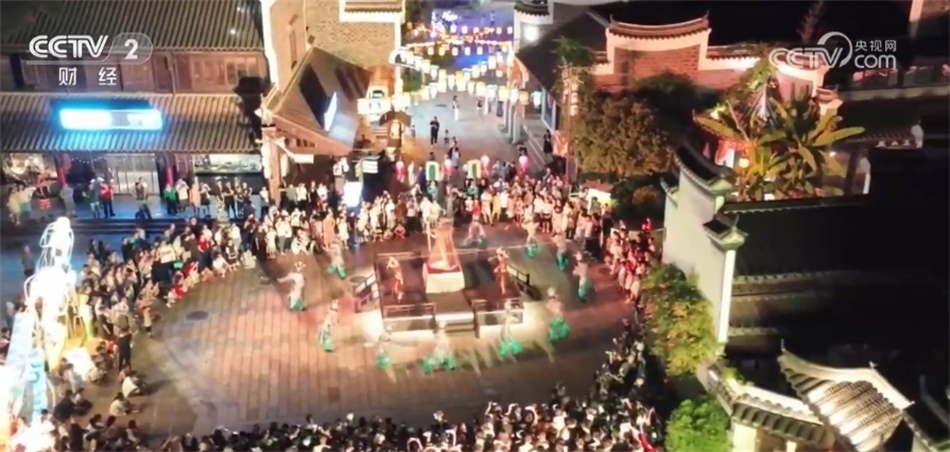 總臺記者 姜文婧:大家看我的身邊現(xiàn)在已經(jīng)聚集了很多人,行進(jìn)式的情景演出《無夢到銅官》已經(jīng)開始了。整場演出都在移步換景中完成,依托古鎮(zhèn)建筑群、街道和各個(gè)打卡裝置,營造出漢唐風(fēng)的市井繁華景象,讓游客身臨其境,還可以與演員互動。