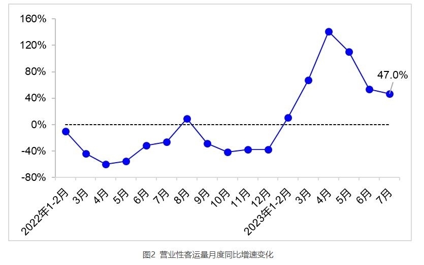 營業(yè)性客運方面,7月完成營業(yè)性客運量9.1億人,同比增長47.0%。其中,完成公路客運量4.1億人,同比增長19.3%;完成水路客運量3034萬人,同比增長78.3%。1—7月,完成營業(yè)性客運量52.3億人,同比增長54.6%。其中,完成公路客運量25.5億人,同比增長18.7%;完成水路客運量1.5億人,同比增長128.8%。?