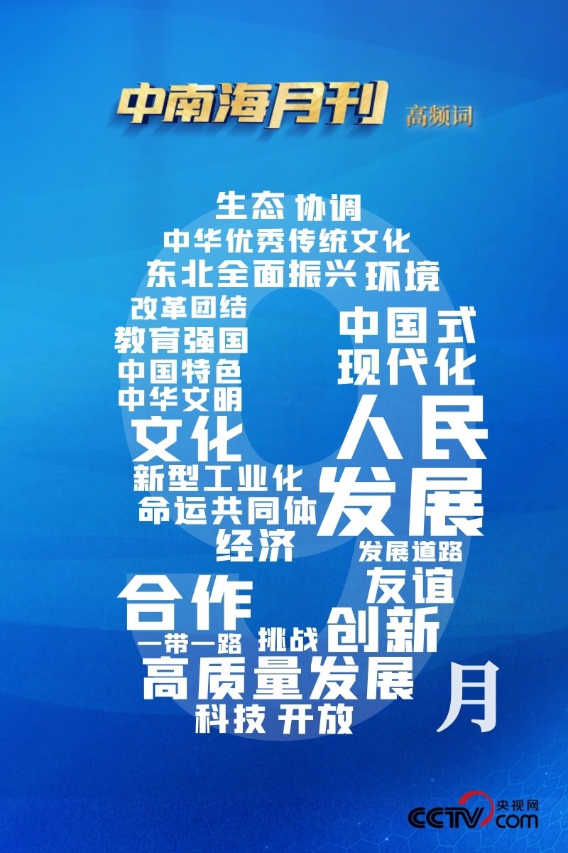 任何一個(gè)地方要實(shí)現(xiàn)高質(zhì)量發(fā)展,首先要明確自身在國(guó)家戰(zhàn)略全局中的定位。央視網(wǎng)I學(xué)習(xí)數(shù)據(jù)庫(kù)梳理分析習(xí)近平總書(shū)記9月重要講話(huà),“發(fā)展”“人民”“合作”等詞語(yǔ)持續(xù)高頻出現(xiàn),“中國(guó)式現(xiàn)代化”“東北全面振興”“協(xié)調(diào)”等詞引人關(guān)注。通過(guò)這些高頻詞,共同學(xué)習(xí)、領(lǐng)悟總書(shū)記對(duì)地方實(shí)踐的戰(zhàn)略思考。