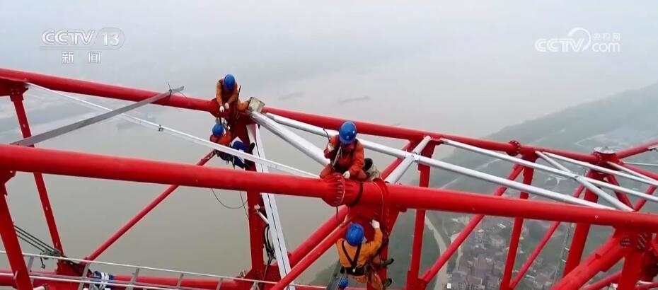 假日期間,湖北6項(xiàng)特高壓工程建設(shè)不停工,近3000人堅(jiān)守崗位。在武漢—南昌雙回1000千伏線路工程現(xiàn)場,百名施工人員在進(jìn)行跨江塔最后的塔材安裝?,F(xiàn)場通過建立高空微型氣象站和可視化監(jiān)控指揮中心,運(yùn)用數(shù)字化系統(tǒng),實(shí)時對作業(yè)過程動態(tài)修正,確保高空人員安裝的精準(zhǔn)性和安全性。