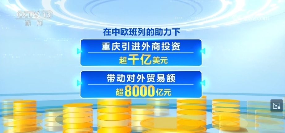和10年前相比,“渝新歐”貨物發(fā)送量增長(zhǎng)157倍。在中歐班列的助力下,重慶引進(jìn)外商投資超千億美元,帶動(dòng)對(duì)外貿(mào)易額超8000億元。