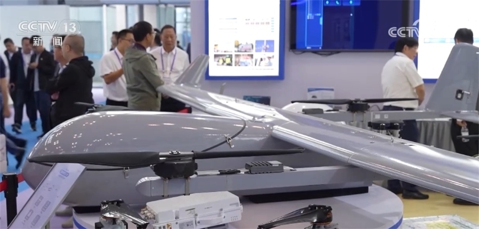 ?????? 在展會的未來產(chǎn)業(yè)館,“上天入?!钡母呖萍夹庐a(chǎn)品讓眾多觀眾駐足體驗?,F(xiàn)在您看到的就是一架垂直起降式的衛(wèi)星通信無人機(jī),它搭載了國產(chǎn)的亞太衛(wèi)星技術(shù),目前已經(jīng)被廣泛應(yīng)用于應(yīng)急救援、公安消防、水利農(nóng)林等各個領(lǐng)域,這個機(jī)器的翼展只有六米,可以適應(yīng)各種地形的起降。?