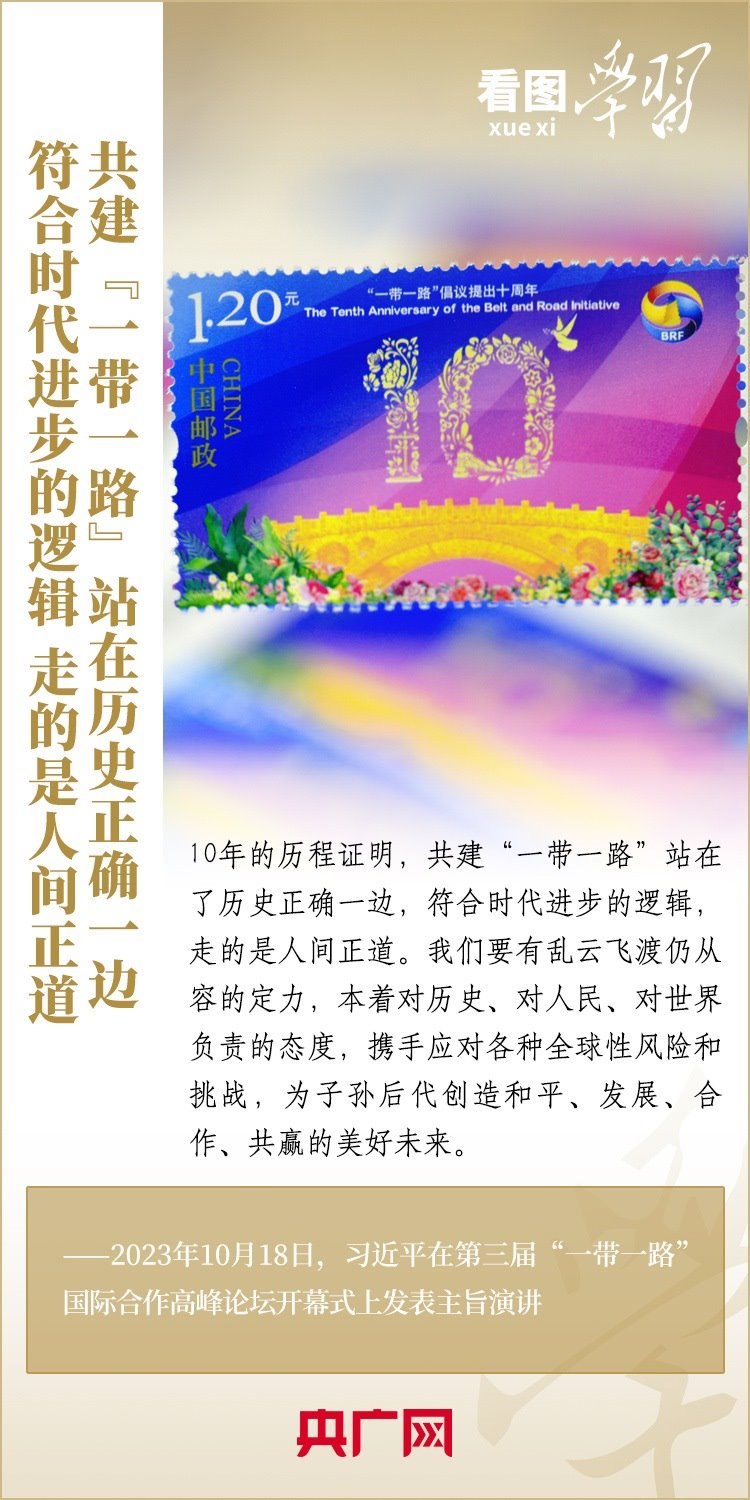 10月18日,習(xí)近平主席出席第三屆“一帶一路”國際合作高峰論壇開幕式并發(fā)表主旨演講,深刻總結(jié)共建“一帶一路”倡議提出十年來取得的發(fā)展成果和經(jīng)驗(yàn),就中國支持高質(zhì)量共建“一帶一路”提出具體行動(dòng),強(qiáng)調(diào)要迎接共建“一帶一路”更高質(zhì)量、更高水平的新發(fā)展,推動(dòng)實(shí)現(xiàn)世界各國的現(xiàn)代化,建設(shè)一個(gè)開放包容、互聯(lián)互通、共同發(fā)展的世界,共同推動(dòng)構(gòu)建人類命運(yùn)共同體!一起來學(xué)習(xí)!