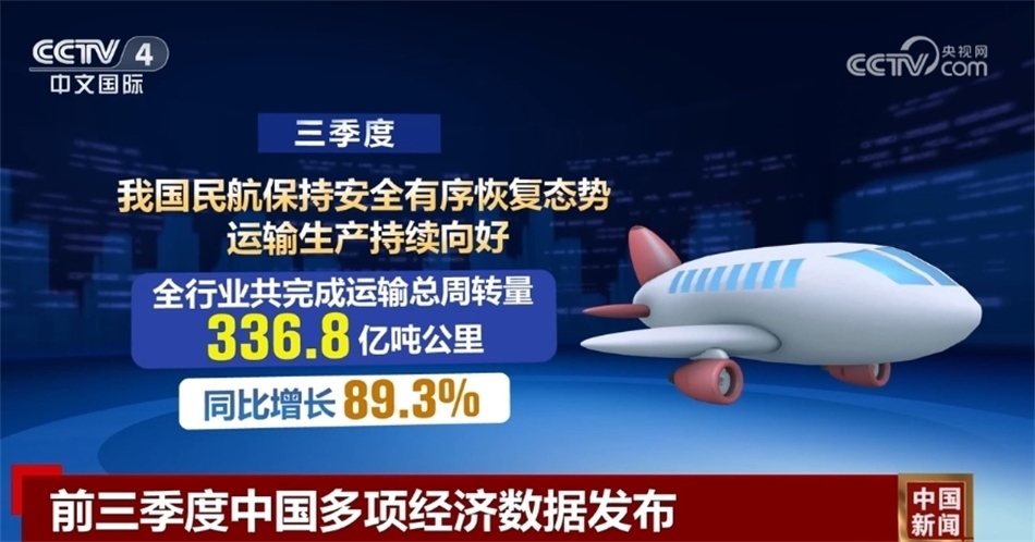 三季度,中國民航保持安全有序恢復(fù)態(tài)勢,運輸生產(chǎn)持續(xù)向好,全行業(yè)共完成運輸總周轉(zhuǎn)量336.8億噸公里,同比增長89.3%;客運市場需求旺盛,全行業(yè)共完成旅客運輸量1.8億人次,同比增長108.3%,行業(yè)客運規(guī)模創(chuàng)季度歷史新高。