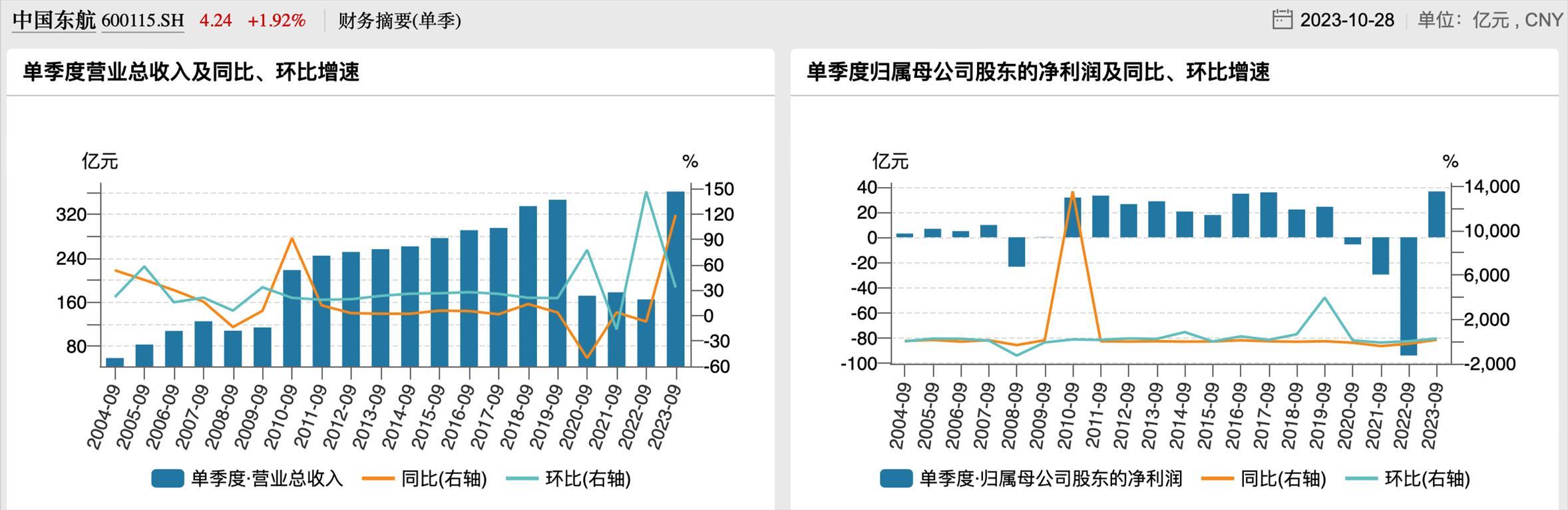 東航歷年三季度業(yè)績(jī)
