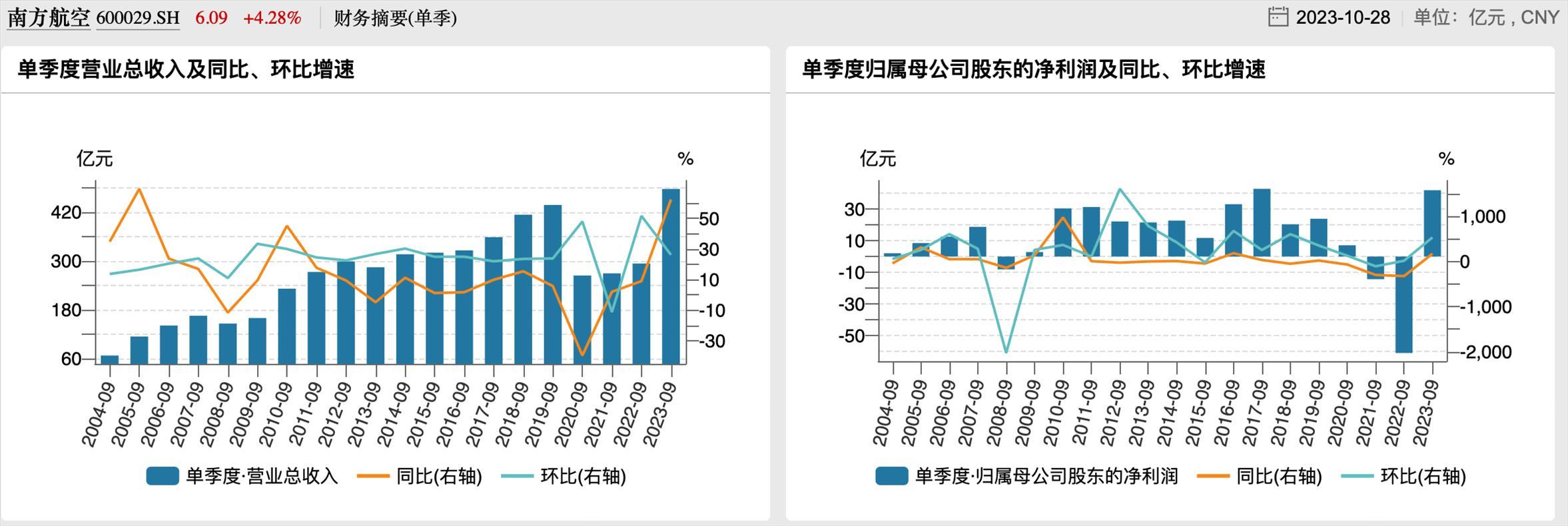 南航歷年第三季度業(yè)績(jī)