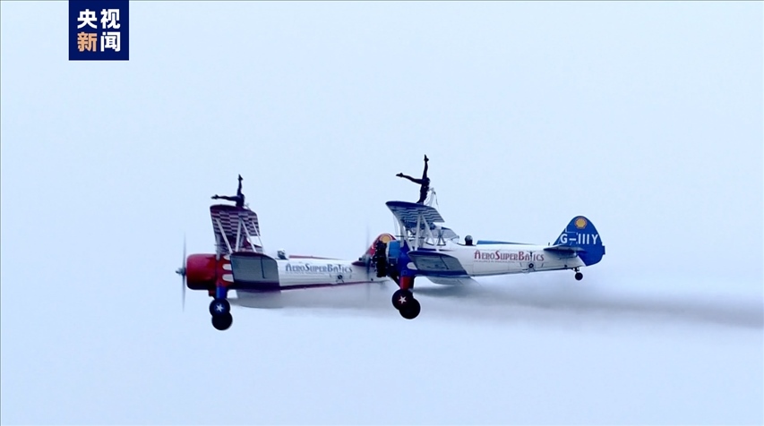 10月27日下午,2023中國(guó)航空產(chǎn)業(yè)大會(huì)暨南昌飛行大會(huì)正式開(kāi)幕,本次大會(huì)為期三天。大會(huì)邀請(qǐng)了國(guó)內(nèi)外6支世界頂級(jí)飛行表演隊(duì)同場(chǎng)獻(xiàn)技,并新增焰火飛行、機(jī)翼行走等高難度特技表演,為觀眾帶來(lái)了精彩的視覺(jué)體驗(yàn)。其中,英國(guó)的御風(fēng)機(jī)翼行走特技飛行表演隊(duì)是世界上唯一的可進(jìn)行編隊(duì)特技飛行的機(jī)翼行走表演隊(duì),他們?cè)陲w行中上演了“空中漫步”。