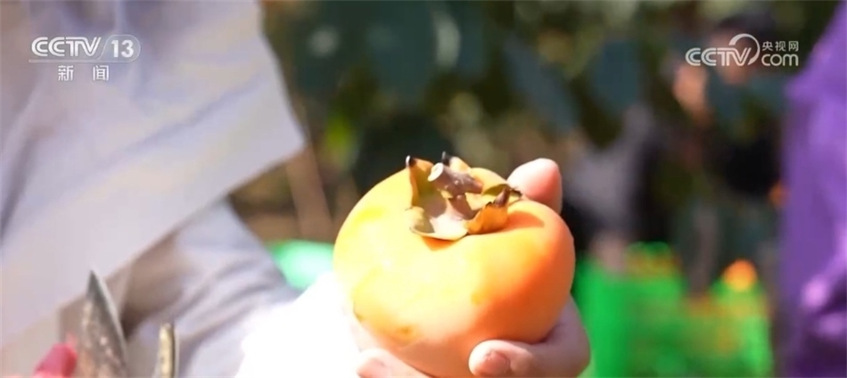 總臺記者 譚海梅:柿子要成為柿餅,必須要削皮,您看我手上這個柿子,它表皮有白色的霜,它其實是一種蠟質(zhì)層,因為蠟質(zhì)層比較厚,所以里面的水分很難蒸發(fā),而且柿子皮比較澀,所以削皮的過程也是脫澀的過程。