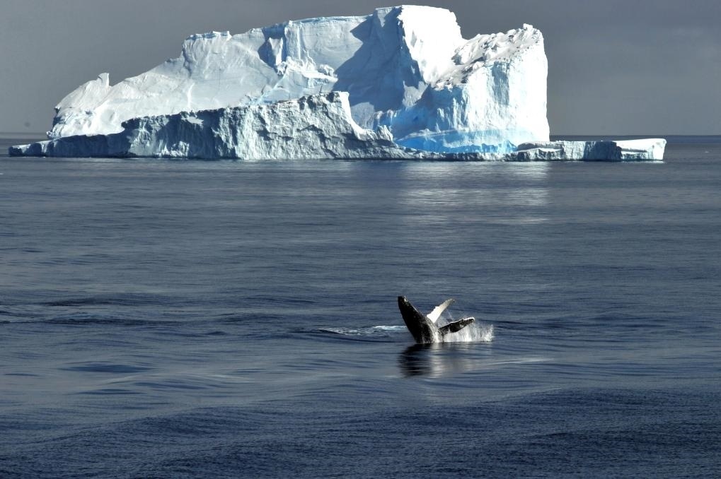 在我國第30次南極考察中,記者曾乘坐“雪龍”號,前往羅斯海恩克斯堡島開展建站前期準(zhǔn)備工作。當(dāng)時正值南極夏季,天氣晴好,羅斯海風(fēng)平浪靜,船航經(jīng)的海域,時常可見一座座造型各異的冰山漂浮在海面上。有時,平靜的海面上會突然出現(xiàn)一陣漣漪,一頭鯨魚在一座巨大的冰山腳下露出海面,悠然嬉戲。