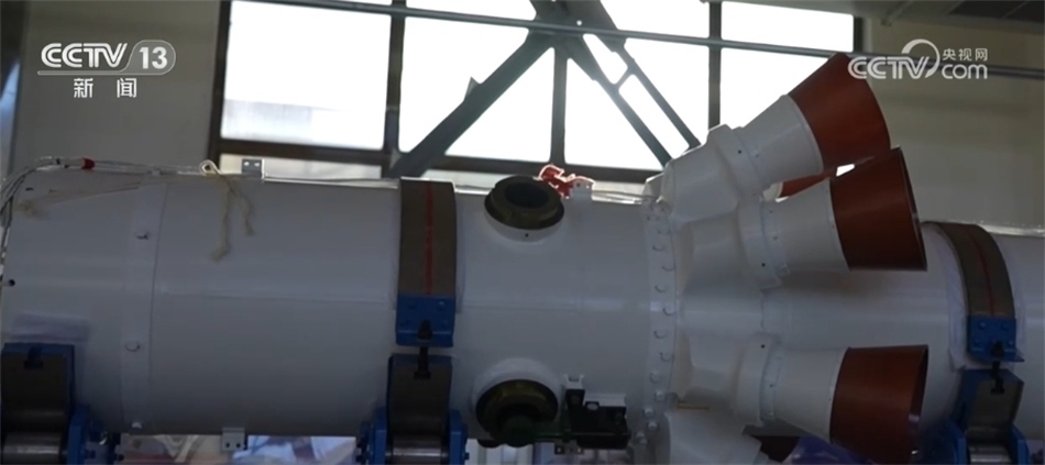 航天科技集團一院長征二號F運載火箭總體設計師 陳牧野:逃逸主發(fā)動機,大家可以看到它噴管相比其他的都比較大,它的推力也是這幾個發(fā)動機中最大的。它的作用就是當火箭發(fā)生重大故障的時候、可能威脅到航天員安全的時候,它把整個逃逸飛行器帶離故障火箭,然后能夠使逃逸飛行器打到一安全的區(qū)域。
