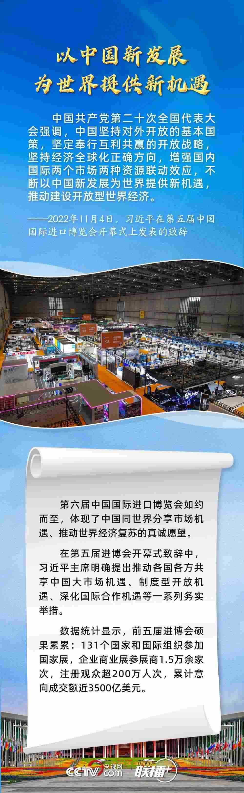 11月5日,第六屆中國國際進(jìn)口博覽會在上海開幕。習(xí)近平主席在致信中指出,2018年以來,進(jìn)博會成功舉辦五屆,依托中國大市場優(yōu)勢,發(fā)揮國際采購、投資促進(jìn)、人文交流、開放合作平臺功能,對加快構(gòu)建新發(fā)展格局和推動(dòng)世界經(jīng)濟(jì)發(fā)展作出了積極貢獻(xiàn)。
