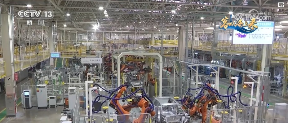 總臺央視記者 高媛:平均每1分鐘就會下線一輛車,在這個智慧工廠里,有1000多臺柔性機(jī)器人實現(xiàn)焊接100%自動化,這樣的智能制造能力就是它高效的“密碼”。