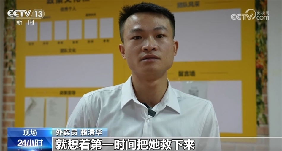 外賣員 賴清華:就想著第一時間把她救下來,我覺得換做任何一個人當(dāng)時也會這樣做,伸一把援手。