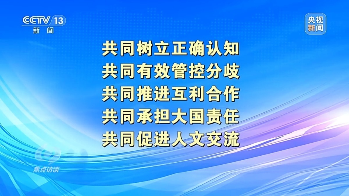 習近平主席深刻指出,中美是選擇加強團結合作,還是挑動陣營對抗,將決定人類前途和地球未來。美方必須認真思考中美兩國到底是伙伴還是對手這個根本性問題,做出正確歷史選擇。習近平主席指出,這次舊金山會晤,雙方應設立新的愿景:一是共同樹立正確認知;二是共同有效管控分歧;三是共同推進互利合作;四是共同承擔大國責任;五是共同促進人文交流。這“五個共同”為中美關系澆筑了五根支柱,開辟了面向未來的“舊金山愿景”。