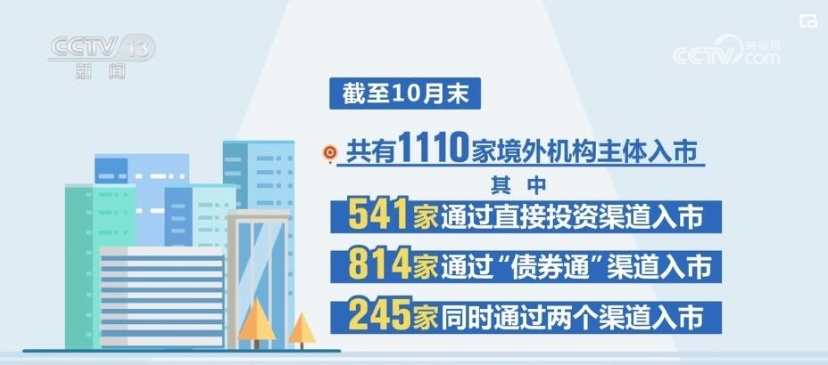 央行上??偛繑?shù)據(jù)顯示,在資金凈流入的同時,銀行間債券市場的境外機構參與數(shù)量也在不斷增加,截至10月末,共有1110家境外機構主體入市。其中,541家通過直接投資渠道入市,814家通過“債券通”渠道入市,245家同時通過兩個渠道入市。近年來,我國銀行間債券市場對外開放力度不斷加大,吸引了更多境外投資者。