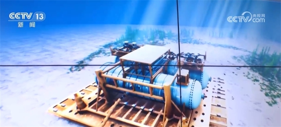 總臺央視記者 張叢婧:經過今天上午近3個小時的下水投放作業(yè),全球首個商用海底數據中心的數據艙現在已經下沉到海底35米深的預定位置。通過潛水控制臺上的這個屏幕,我們可以清晰地看到它在水下的狀態(tài)。此時,潛水工作人員已經確認了數據艙和底座的對接情況,插上了鎖定插銷,這意味著下水安裝成功。
