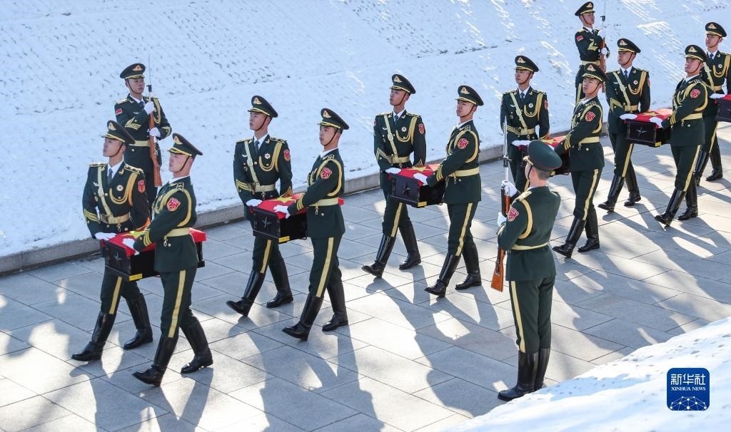 新華社沈陽11月24日電 ?題:英魂安息 家國安寧——第十批在韓中國人民志愿軍烈士遺骸安葬儀式側(cè)記