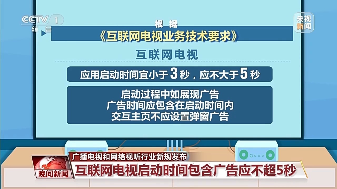 互聯(lián)網(wǎng)電視啟動(dòng)時(shí)間包含廣告應(yīng)不超5秒