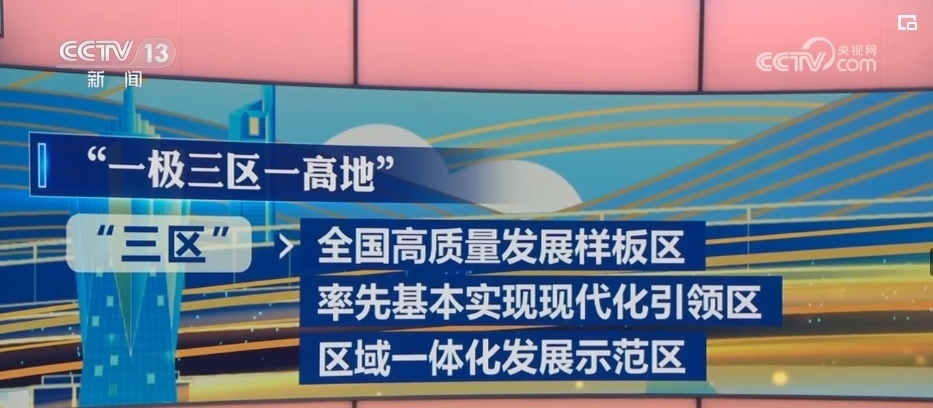 其中,“一極”就是全國(guó)發(fā)展強(qiáng)勁活躍增長(zhǎng)極,“三區(qū)”指的是全國(guó)高質(zhì)量發(fā)展樣板區(qū)、率先基本實(shí)現(xiàn)現(xiàn)代化引領(lǐng)區(qū)、區(qū)域一體化發(fā)展示范區(qū),而“一高地”則是指新時(shí)代改革開(kāi)放新高地。