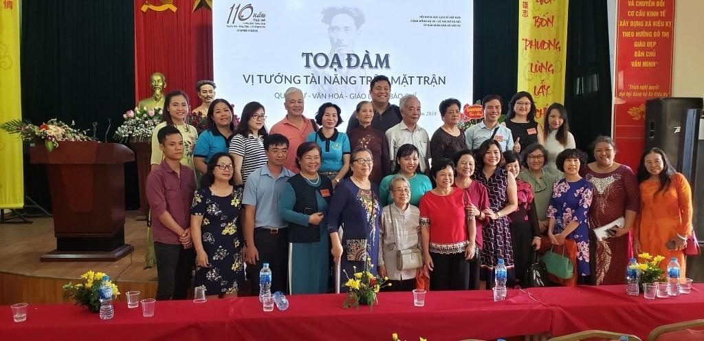 2018年9月30日,中越“兩國(guó)將軍”洪水誕辰110周年紀(jì)念活動(dòng)在洪水故鄉(xiāng)河內(nèi)市嘉林縣驕騎鄉(xiāng)舉行。此為洪水將軍后代合影留念。(受訪者供圖)