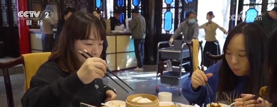上午,記者在揚(yáng)州某茶社看到,店內(nèi)座無虛席,不少游客正排隊(duì)等待叫號(hào)。