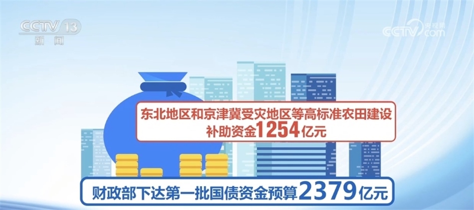據(jù)介紹,根據(jù)工作機(jī)制確定的第一批2900多個(gè)項(xiàng)目,財(cái)政部已經(jīng)下達(dá)第一批國(guó)債資金預(yù)算2379億元,其中,災(zāi)后恢復(fù)重建和提升防災(zāi)減災(zāi)能力補(bǔ)助資金1075億元、東北地區(qū)和京津冀受災(zāi)地區(qū)等高標(biāo)準(zhǔn)農(nóng)田建設(shè)補(bǔ)助資金1254億元、重點(diǎn)自然災(zāi)害綜合防治體系建設(shè)工程補(bǔ)助資金(氣象基礎(chǔ)設(shè)施項(xiàng)目建設(shè))50億元。