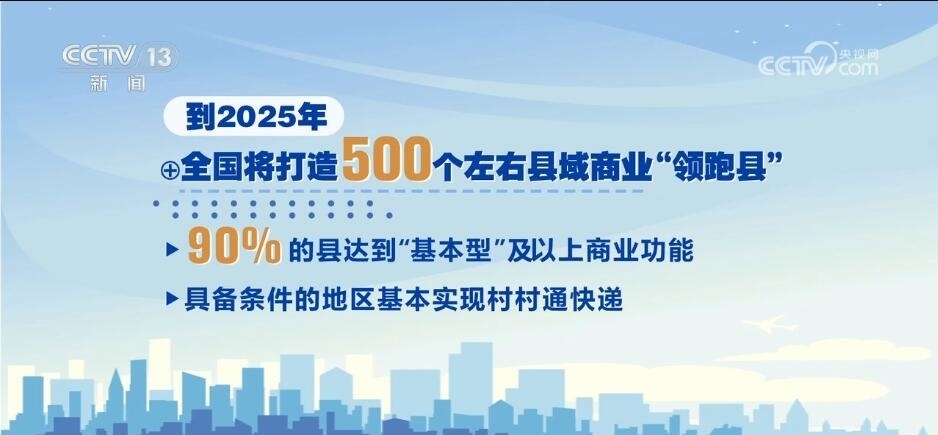 按照規(guī)劃,到2025年,全國將打造500個左右縣域商業(yè)“領(lǐng)跑縣”,90%的縣達到“基本型”及以上商業(yè)功能,具備條件的地區(qū)基本實現(xiàn)村村通快遞。