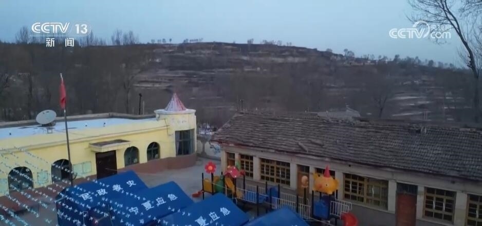 總臺記者 馬麗:我現(xiàn)在是在積石山縣前嶺小學(xué)附屬幼兒園。目前,這里也是前嶺村的一個集中安置點。地震發(fā)生后,這里的主體校舍沒有明顯受損,并且校內(nèi)廣場有大面積的空地,所以被作為了臨時安置點,來安置附近的40余名村民。其中,有近30名是小學(xué)生和幼兒園的小朋友。他們有些是村民自己的孩子,有些是附近親戚家的孩子。考慮到這里的環(huán)境更加穩(wěn)定和保暖,孩子們也被聚集到了這里?,F(xiàn)在,正是早起的時間,在安置點也升起了裊裊炊煙,陽光從遠處照了過來。