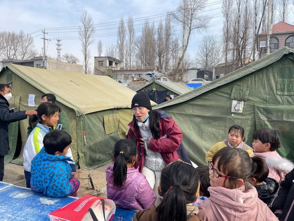 21日上午,馮小霞和24名同伴就從與積石山縣毗鄰的廣河縣抵達(dá)災(zāi)區(qū),開(kāi)展志愿服務(wù)。地震發(fā)生后,和馮小霞類似,來(lái)自多地的志愿者化身“帳篷城”里的“孩子王”,為大家開(kāi)設(shè)了繪畫(huà)、文化課程輔導(dǎo)、防災(zāi)救災(zāi)知識(shí)等內(nèi)容的志愿服務(wù)。
