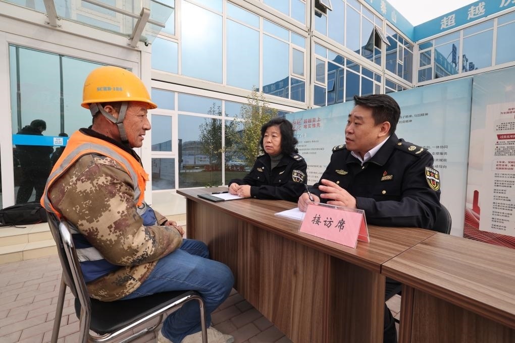 圖為北京市根治拖欠農(nóng)民工工資工作協(xié)調(diào)小組在新國展二期建設(shè)工地進行現(xiàn)場接訪。(北京市人社局供圖)
