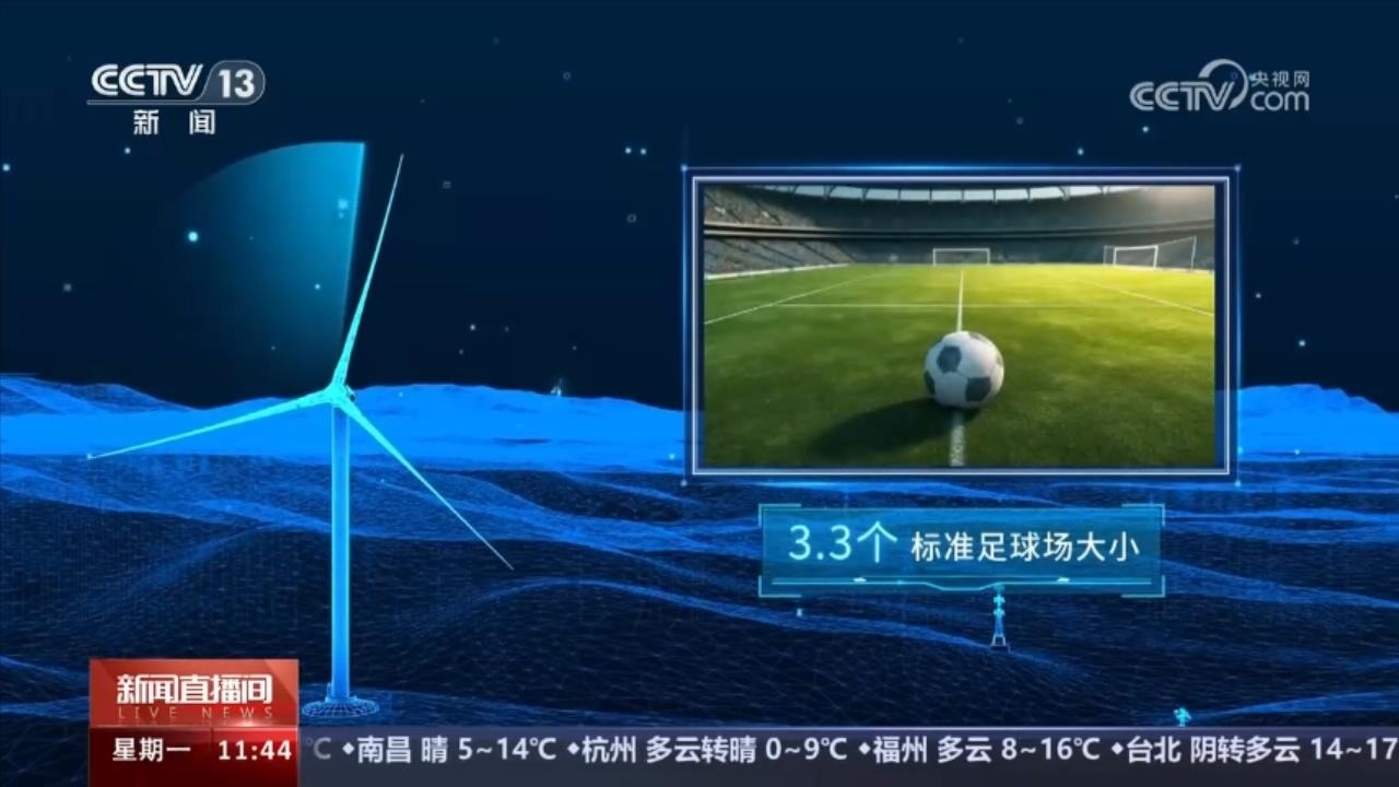 173米,是歐瑪亭嘎風(fēng)電場(chǎng)的風(fēng)機(jī)葉片直徑,其掃風(fēng)面積相當(dāng)3.3個(gè)標(biāo)準(zhǔn)足球場(chǎng)大小。