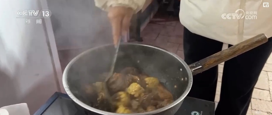 2023年12月31日晚上,孩子們的笑聲、小呲花的噼啪聲點燃了積石山縣劉集鄉(xiāng)團結村安置點過節(jié)的氛圍。電視打開了,安置點的群眾圍著篝火一起看跨年晚會。而此時,婦女們也在忙著,燉牛肉、包餃子、炸果子,香氣在安置點彌漫開來。