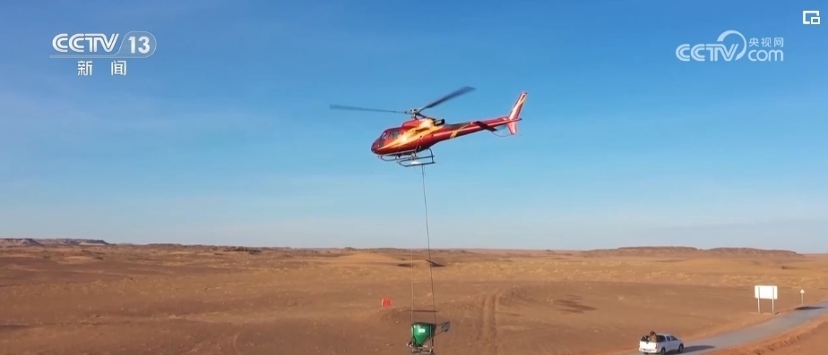 在內(nèi)蒙古烏拉特后旗瑪瑙湖的上空,每天都有兩架直升機(jī)輪番作業(yè),每天大概飛播20多噸種子。陰山北麓烏拉特后旗2023年度生態(tài)綜合治理項(xiàng)目是三北工程的一部分,在2023年7月開始施工,計(jì)劃在2024年2月底完成生態(tài)修復(fù)治理面積約為77.44萬畝。