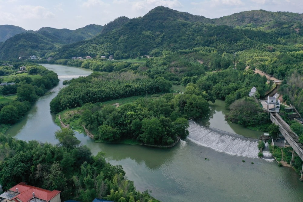 位于浙江省衢州市龍游縣的世界灌溉工程遺產姜席堰(2023年8月2日攝,無人機照片)。新華社記者 黃宗治 攝