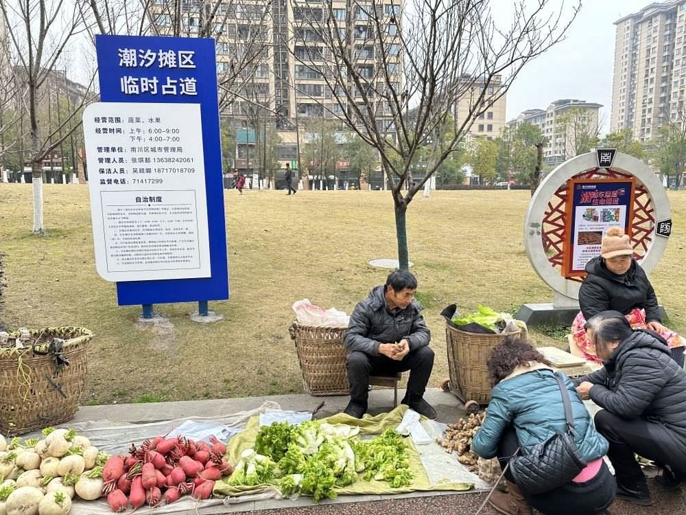 去年4月以來,南川區(qū)探索在小區(qū)周邊等區(qū)域設(shè)立“潮汐攤區(qū)”,目前已設(shè)置攤區(qū)31處、攤位2100余個,引導(dǎo)瓜果農(nóng)、流動菜農(nóng)、經(jīng)營攤販免費入位規(guī)范經(jīng)營,實行“攤位+攤主自治”模式,早中晚定時、規(guī)范定點、統(tǒng)一管理?!斑@讓居民在家門口就能吃上新鮮瓜果蔬菜,也有助于規(guī)范流動攤販管理。”南川區(qū)城市管理局局長姚濤說。