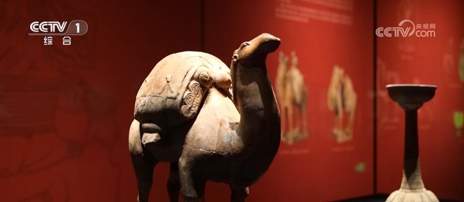 帶著濃濃異域風情的還有晉陽古城遺址出土的列隊成陣的駱駝俑、胡人俑。專家表示,這些文物都反映出古代絲綢之路上,晉陽曾是東西方文明交流十字路口的重要古城。在展出的1000多件文物中,唐代郭行墓壁畫也十分引人注目,墓主郭行曾追隨唐太宗李世民,是一名武將。