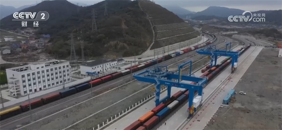總臺央視記者 馬佳倫:這里是位于寧波舟山港北侖第一集裝箱碼頭的作業(yè)區(qū)。此刻一輛來自金華,載五十節(jié)車廂,共計(jì)100標(biāo)箱量的列車正在進(jìn)站。去年底甬金鐵路開通運(yùn)營以來,寧波舟山港新增一條重要疏運(yùn)通道,世界第一大港寧波舟山港與世界小商品之都義烏(間)運(yùn)行效率大大提升。