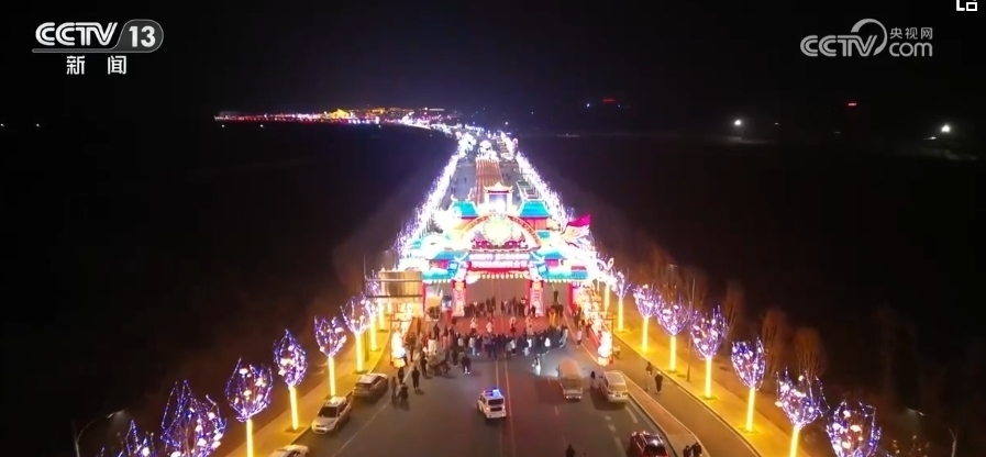 在山西高平市喜鎮(zhèn)蘇莊,當?shù)鼐劢埂跋病蔽幕汀褒垺痹?,融合現(xiàn)代科技手段,打造了以中國年為主色調(diào)的互動式、參與感強的迎春燈會,吸引更多游客前來賞燈。