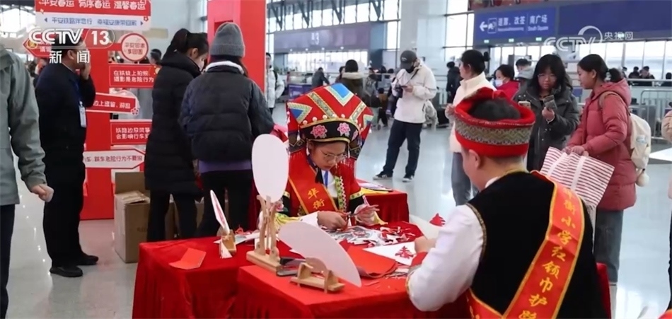 在哈爾濱、西安、上海、廣州各地的火車站,送“福”、快閃、簽名打卡、文藝表演、民俗文化展示等豐富多彩的活動讓人們帶上一份好心情,踏上溫馨的團(tuán)圓之旅。