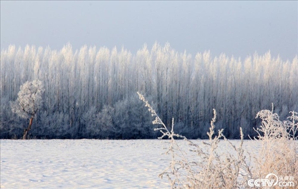 2024年1月31日,新疆塔城,裕民縣出現大面積霧凇景觀,樹木銀裝素裹,玉樹瓊枝,景色迷人。