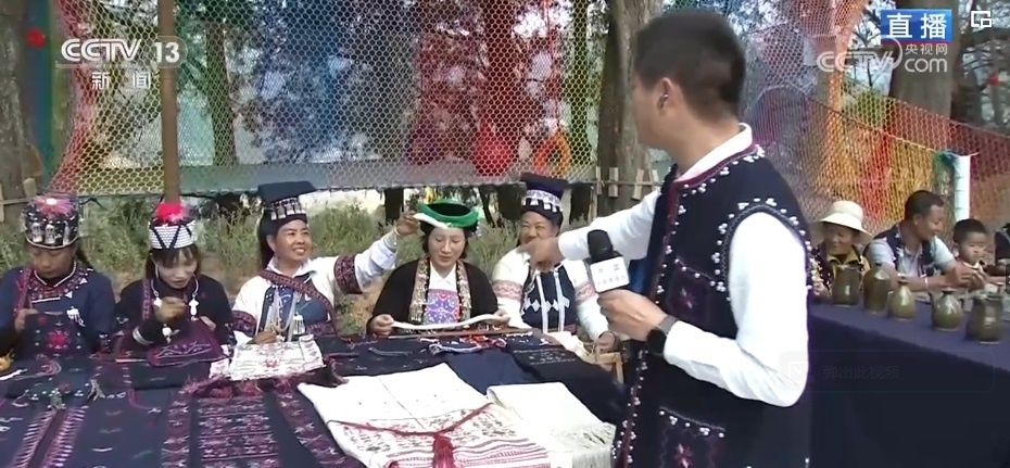 “過春節(jié),穿新衣?!泵褡宕汤C一針一線繡出來了山川湖海、日月繁星,不僅有帽子、衣服,還能做成杯墊、雨傘等,搭配起來都很好看。